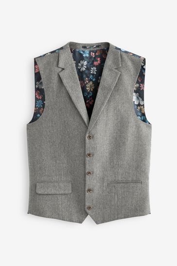 Grijs-groen - Standaard - Nova Fides herenvest van wolmix met visgraatmotief