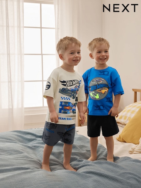 Blauw/wit - Hot Wheels korte pyjama's 2 pack (12mnd-10jr)