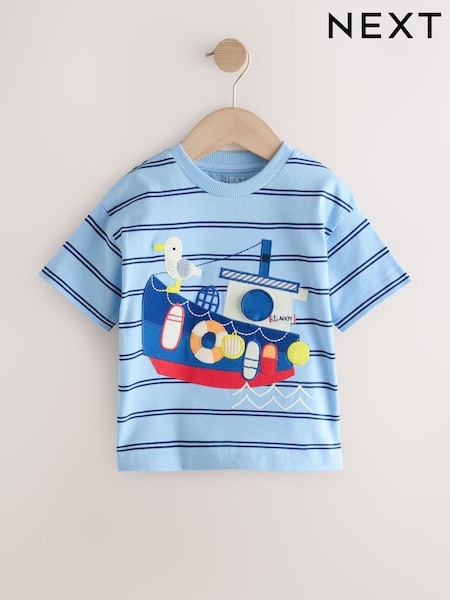 Blue Stripe Sealife Boat - Interactief T-shirt met korte mouwen (3mnd -7jr)