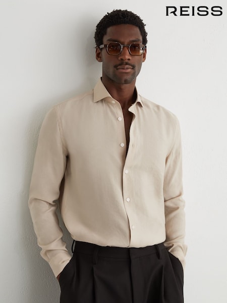 Pastelgeel - Reiss Oscar Modal-Blend Regular-Fit Shirt