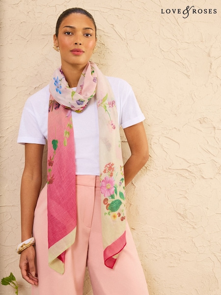 Roze met jungleprint - Love & Roses Lightweight Scarf