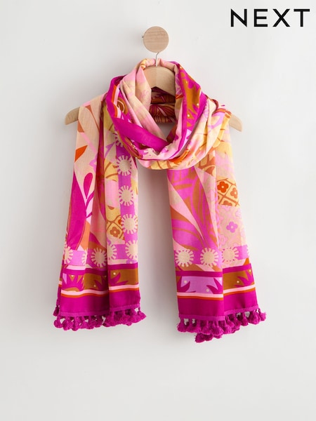 Roze met palmprint - Pink Palm Print Lightweight Scarf with Fringing
