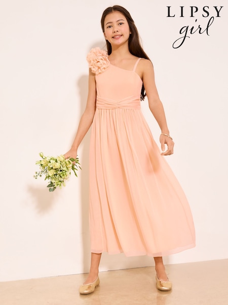Lipsy Peach Pink Corsage One Shoulder Occasion Dress (7-16yrs)