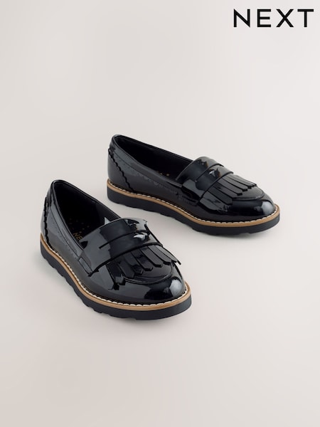 Black Patent Narrow Fit (E) Fringe Loafer School Shoes
