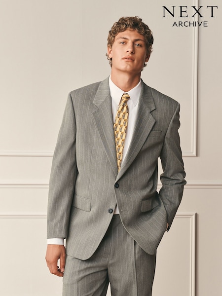 Grey N. Premium Tailored Fit Cotton Blend Stripe Suit Jacket