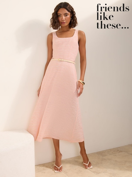 Friends Like These Pink Boucle Belted Midi Dress