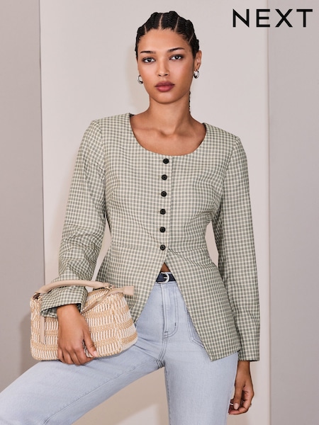 Brown N. Premium Check Linen Rich Single Breasted Blazer