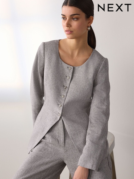 Stone Jacquard Short Sleeve Blazer with Linen