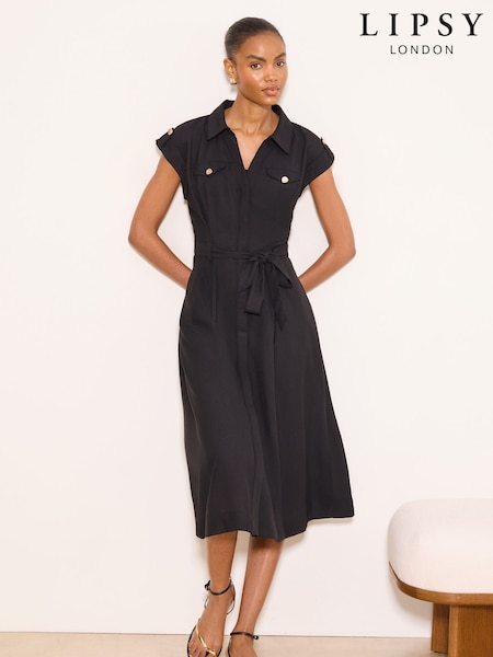 निलो रङ - Lipsy Woven Pleated Midi Shirt Dress