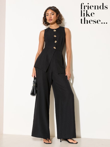 (65)Our latest edit of black jumpsuits is sure to turn heads! Chic and versatile, long sleeve and culotte jumpsuits add effortless style to your look. Discover a variety of gorgeous lace playsuits and wide leg styles also available in petite and curve sizes. Think florals, ruffles and wrap designs paired with a classic clutch for an evening out, while stripes and checks in flattering colourways gracefully style your weekday attire.