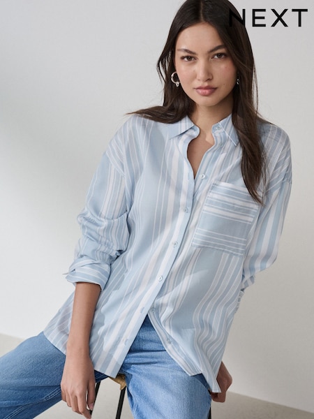 नीलो/सेतो Stripe - नरम आरामदायी लामो बाहुला भएको शर्ट