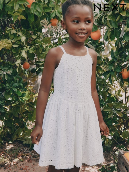 White Strappy Broderie Dress (3-16yrs)