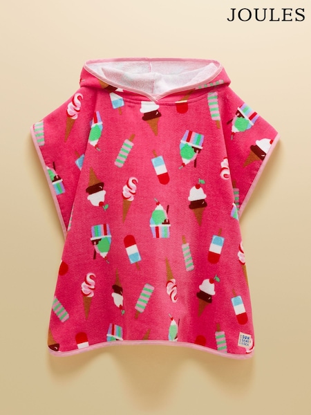 Joules Girls' Decker Pink Ice Cream Towelling Poncho