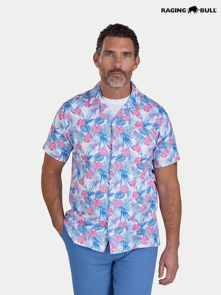Raging Bull White Short Sleeve Maldives Floral Linen Revere Shirt