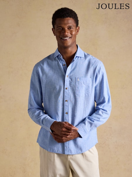 Joules Linen Blend Blue Long Sleeve Shirt