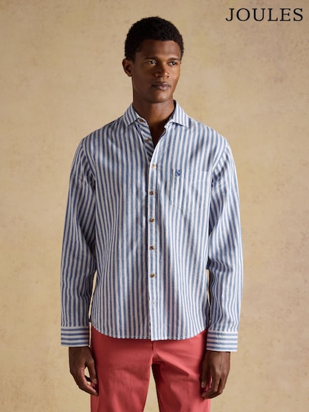 Joules Linen Blend Blue & White Stripe Long Sleeve Shirt