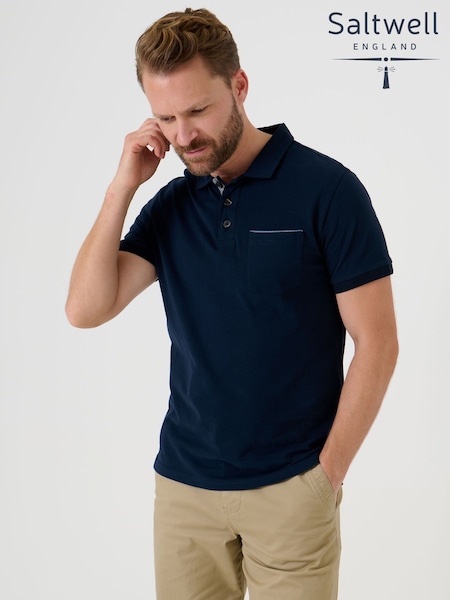 Saltwell Blue Cotton Short Sleeve Polo Shirt