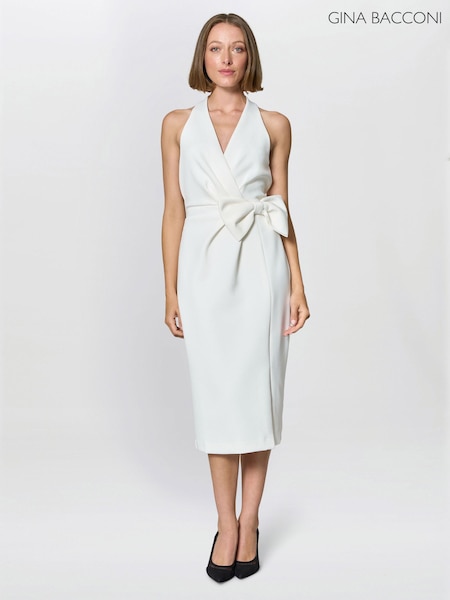 Gina Bacconi White Elliana Bow Detail Midi Dress