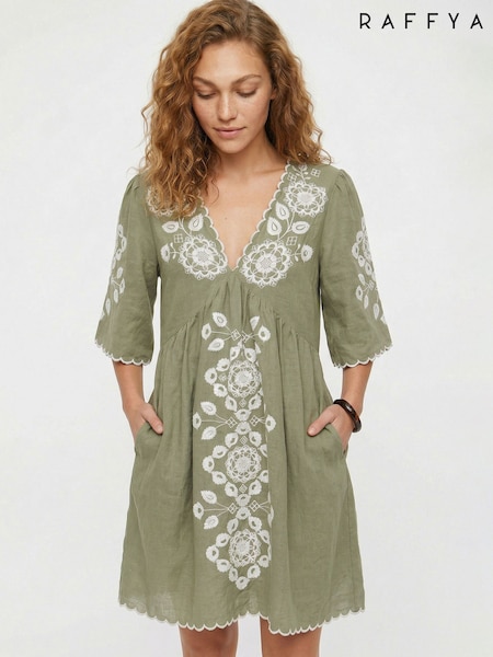 Raffya Green Arabella V-Neck Embroidered Mini Dress