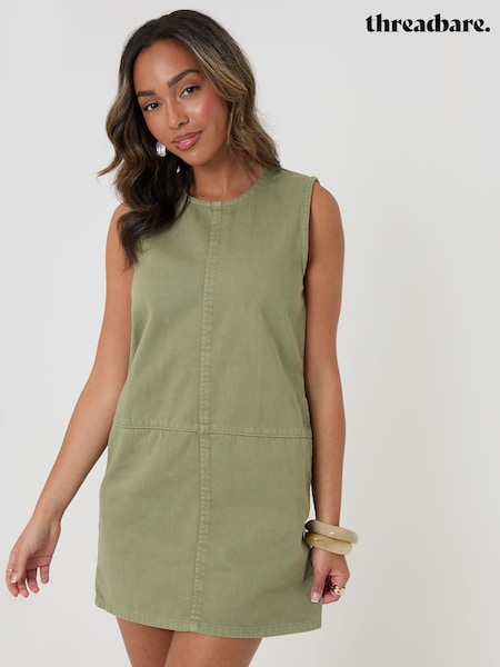Threadbare Green Tiered Cotton Poplin Button Up Mini Dress