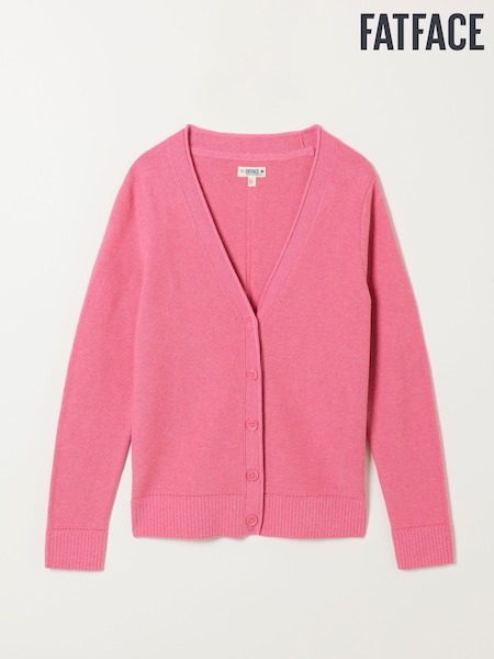 Joules Pink V-Neck Cotton Cable Knitted Cardigan