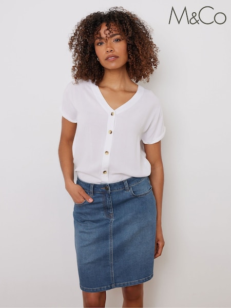 M&Co Green Button Detail Midi Skirt