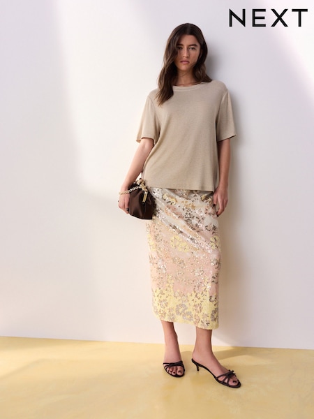 Pink/Yellow Sequin Tabitha Simmons X Next Floral Maxi Skirt