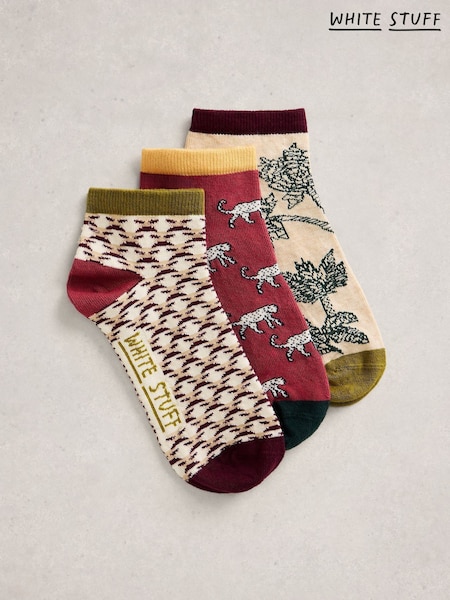 White Stuff Red Tile Print Trainer Socks 3 Pack