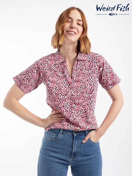 Weird Fish Pink Rhenena Printed Jersey Polo Shirt