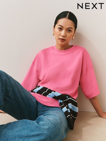 Bright Pink Oversized Boxy Fit Heavyweight Crew Neck T-Shirt