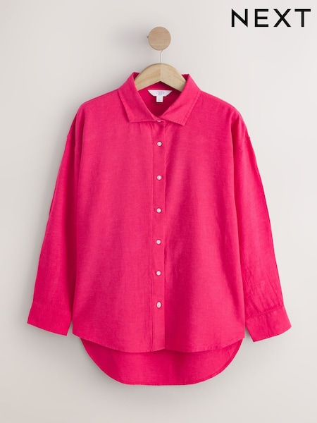 Pink Linen Blend Long Sleeve Shirt