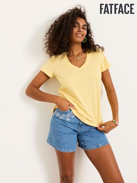 FatFace Demi Yellow V Neck T Shirt