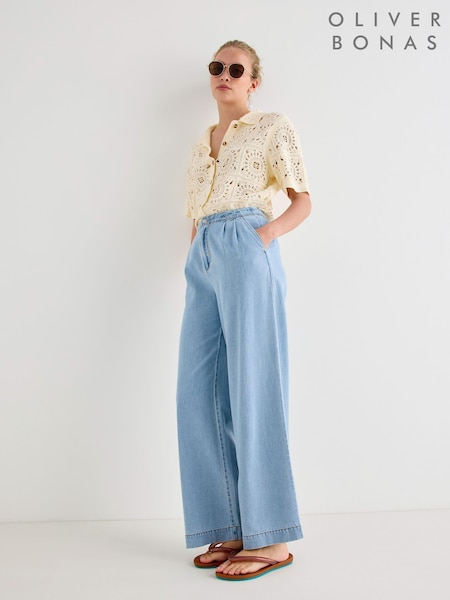 Oliver Bonas Blue Light Chambray Wide Leg Trousers