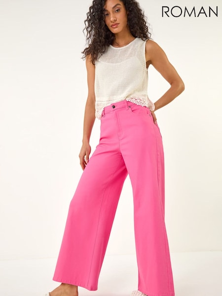 Roman Pink Wide Leg Denim Trousers