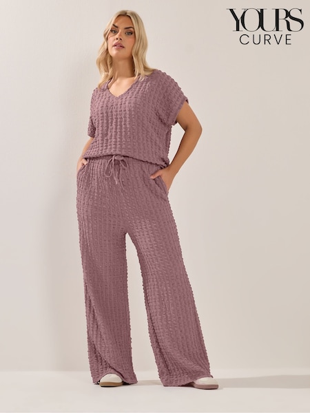 Yours Curve Pink Bubble Textured Wide Leg Trousers