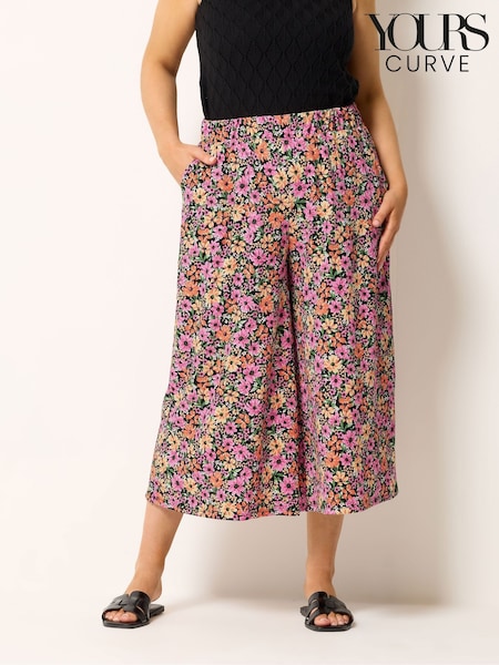 Yours Curve Pink Wide Leg Linen Blend Culottes