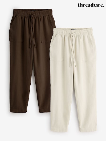 Threadbare Brown 2 Pack Linen Blend Drawstring Trousers