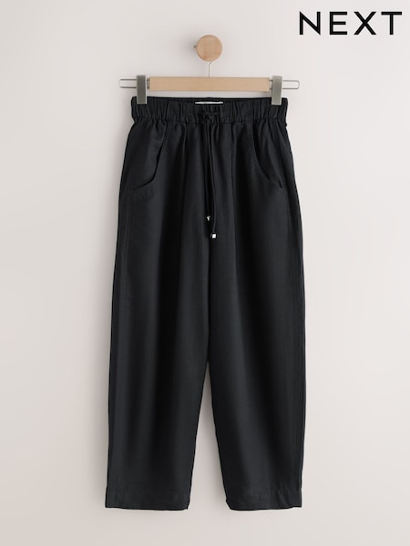 Black Linen Blend Barrel Leg Trousers