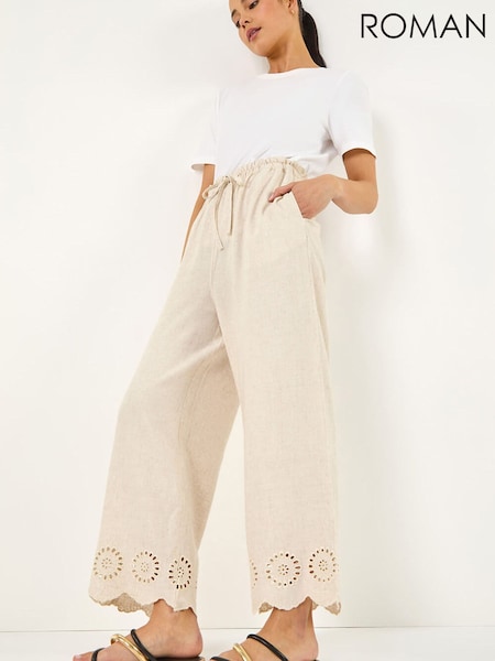 Roman Blue Petite Linen Mix Wide Leg Trouser