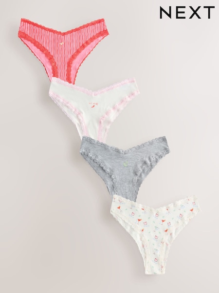 Berry Bow Print Extra High Leg Cotton and Lace Knickers 4 Pack