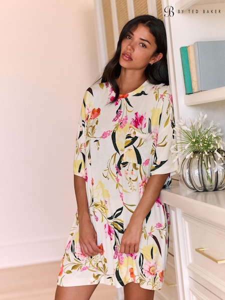 B by Ted Baker Blue Floral Viscose Night T-Shirt