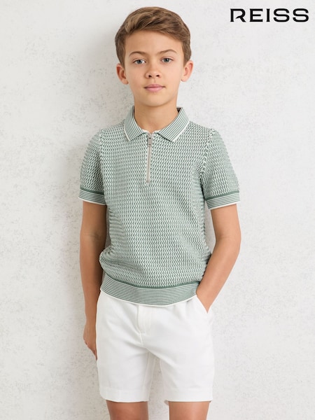 Reiss Sage Spey 9-13 yrs Half-Zip Pointelle Polo Shirt