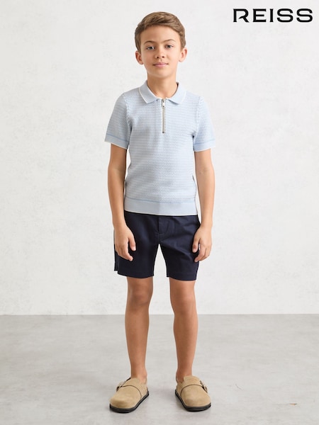 Reiss Ice Blue Brink 9-13 yrs Textured-Knit Half-Zip Polo Shirt