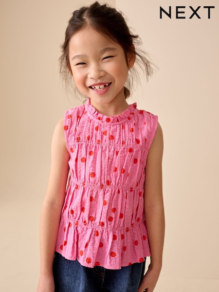 Pink/Red Spot Shirred Sleeveless Blouse (3-16yrs)