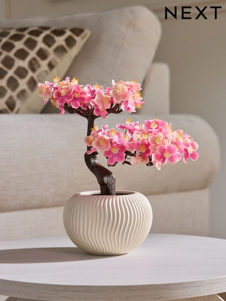 Red Artificial Floral Arrangement In Ribbed Glass Vase