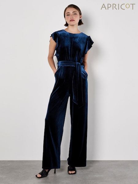 Apricot Green Velvet Ruffle Sleeve Jumpsuit