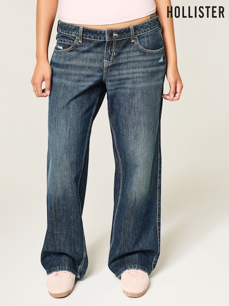 Azul - Vaqueros holgados de tiro bajo de Hollister