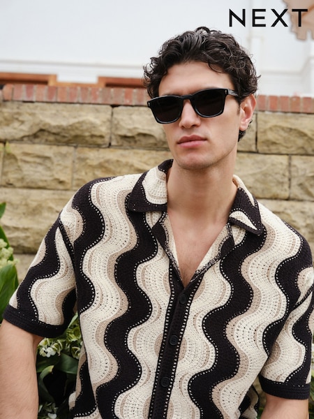 Black/Neutral Relaxed Fit Pattern Crochet Knitted Shirt