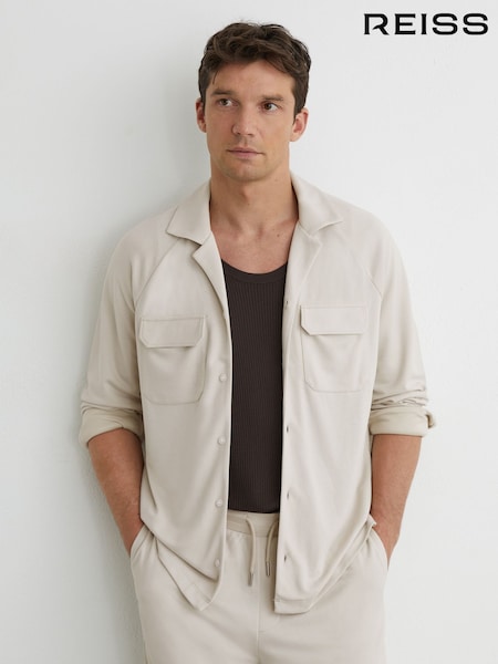 Reiss Light Stone Delmer Jersey Twin-Pocket Cuban-Collar Overshirt