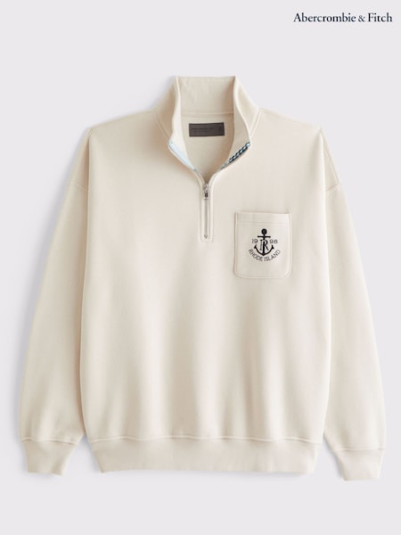 Abercrombie & Fitch Cream Graphic Half Zip Collar Jumper